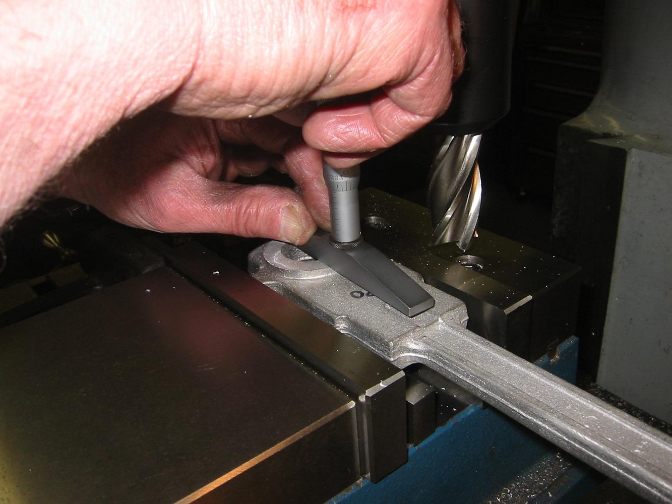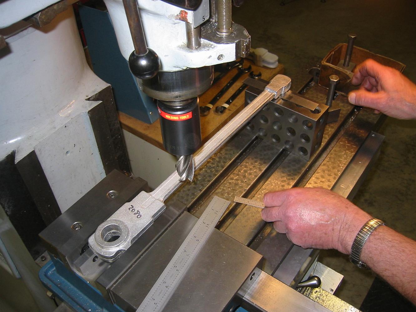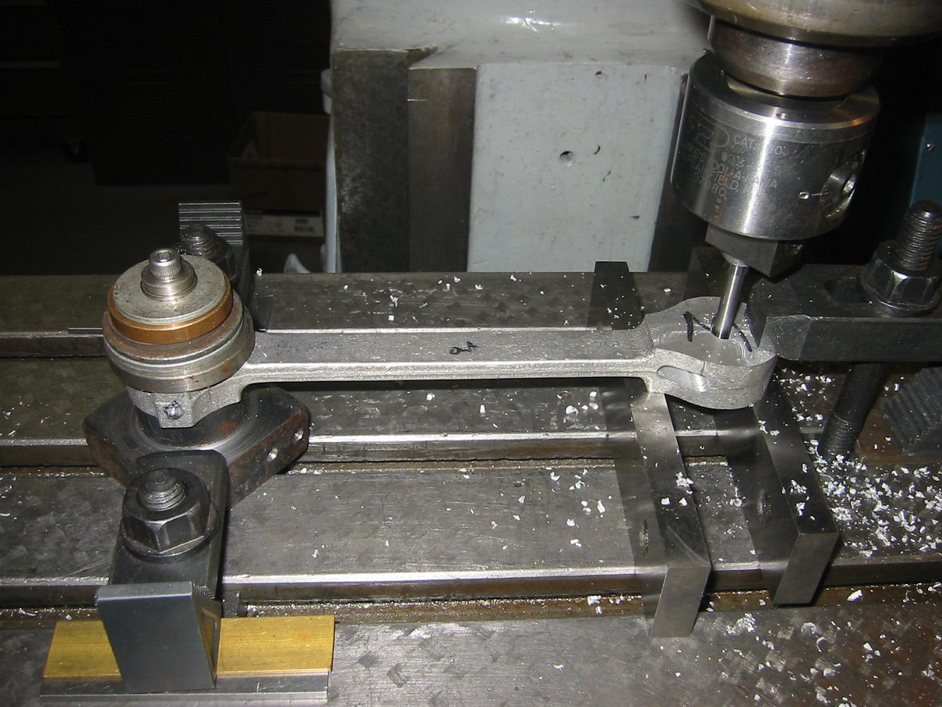 23-Apr-08 Centering the connecting rod to bore the other end. We've moved the blueprint distance from the drilled end to the other end and are centering the…