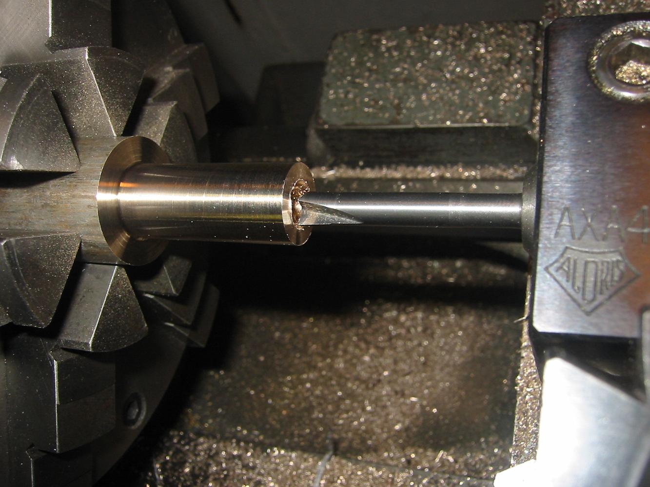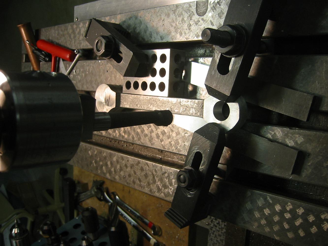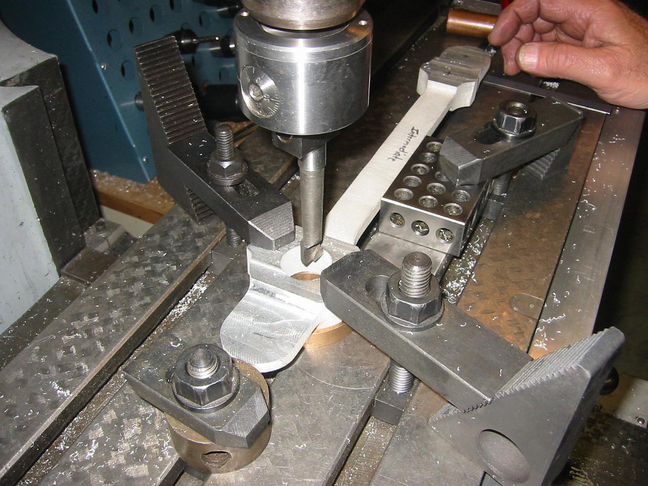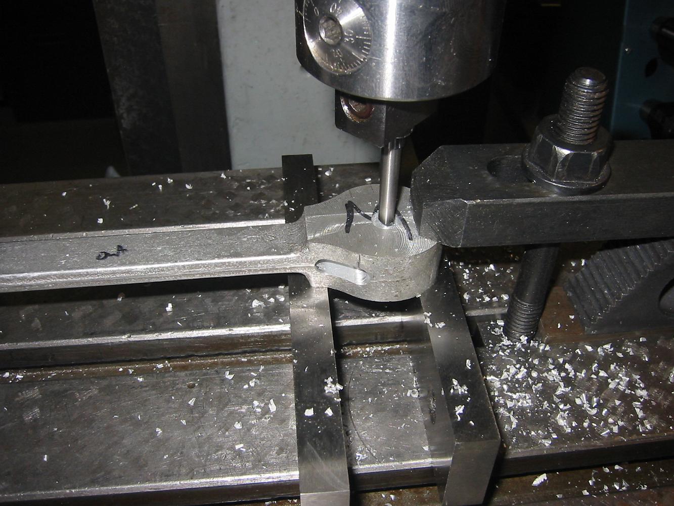 23-Apr-08 Centering the connecting rod to bore the other end. We've moved the blueprint distance from the drilled end to the other end and are centering the…