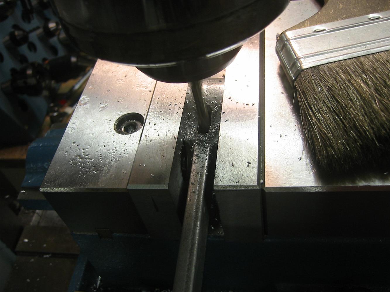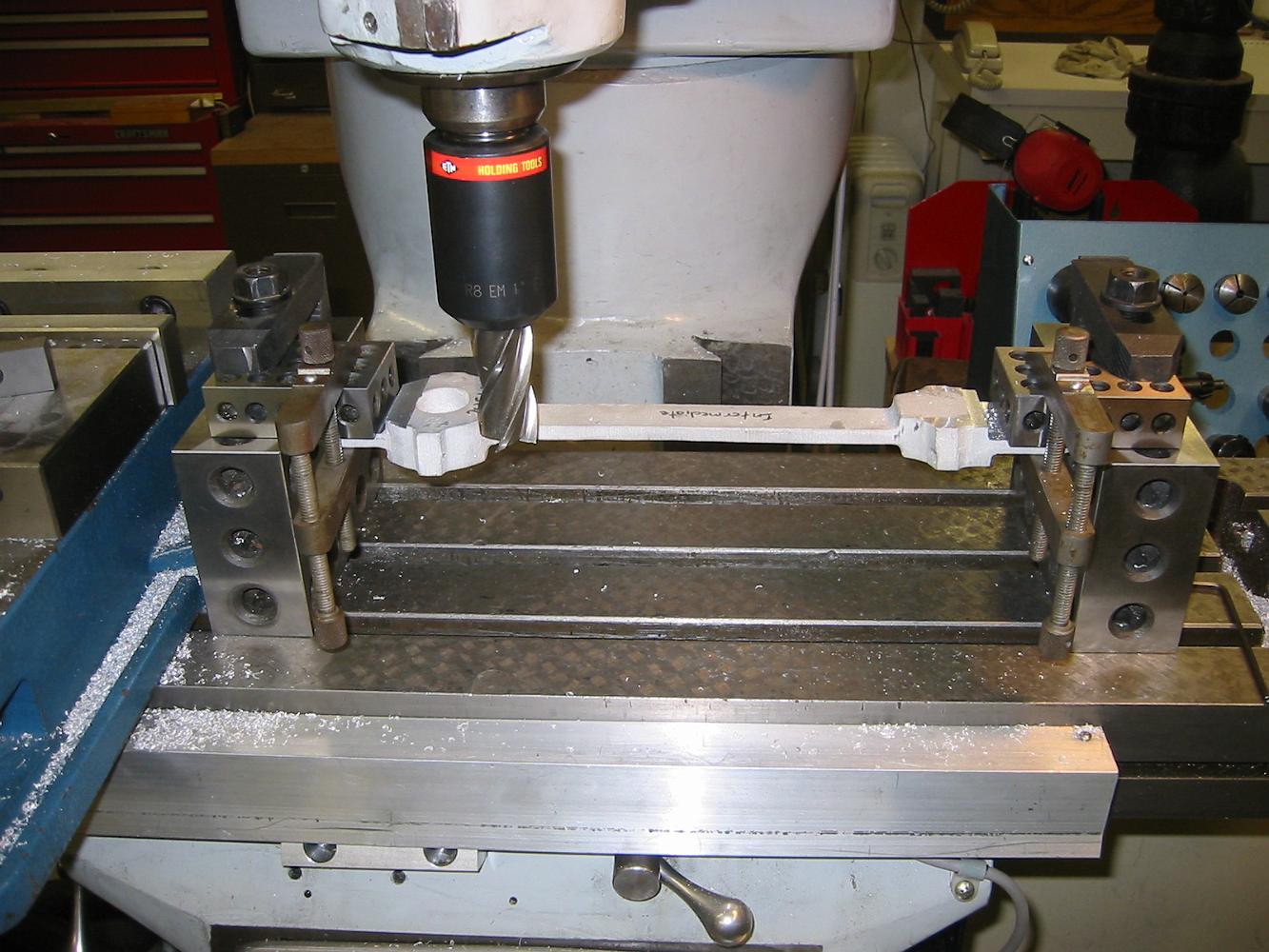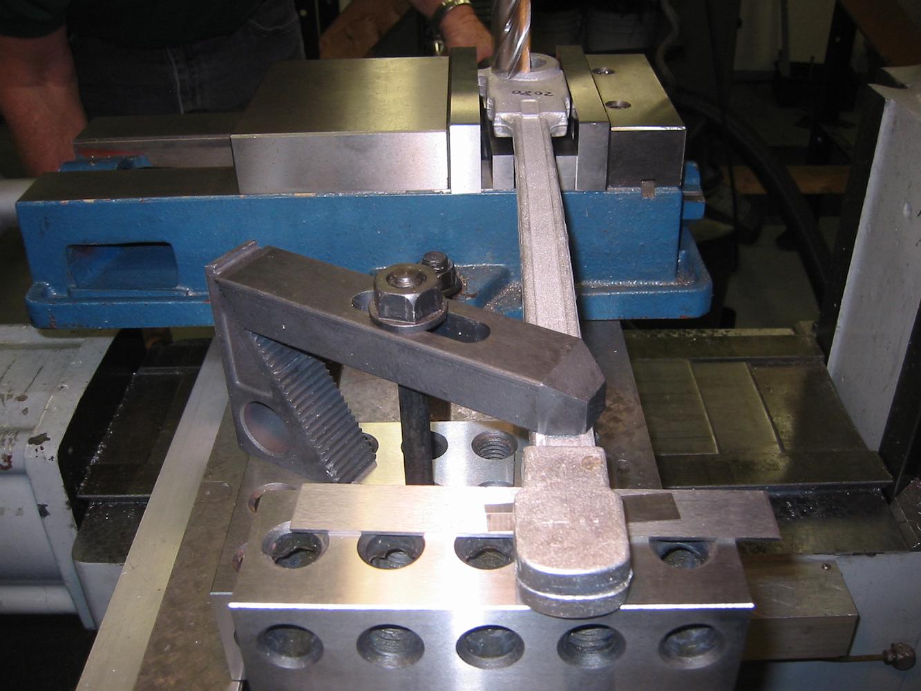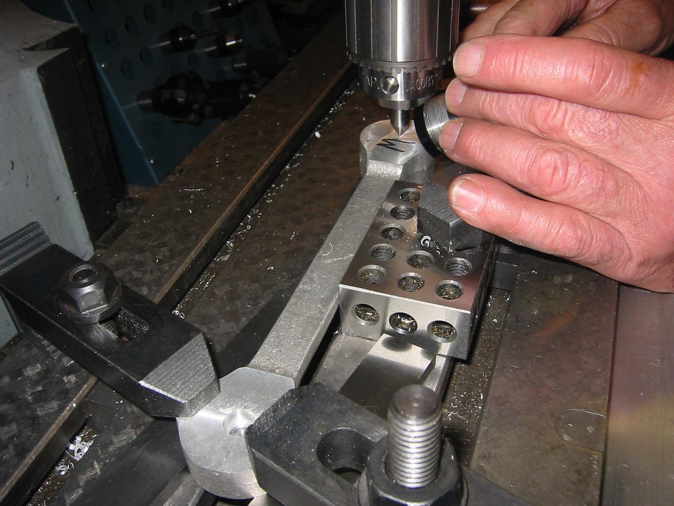 14-May-08 Drilling the holes in the intermediate rod. The left side is bolted down to the fixture, the right side is lightly clamped. We used a drill with…
