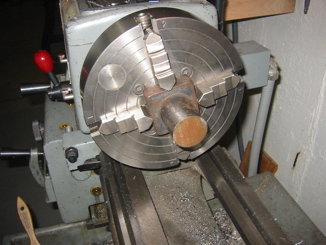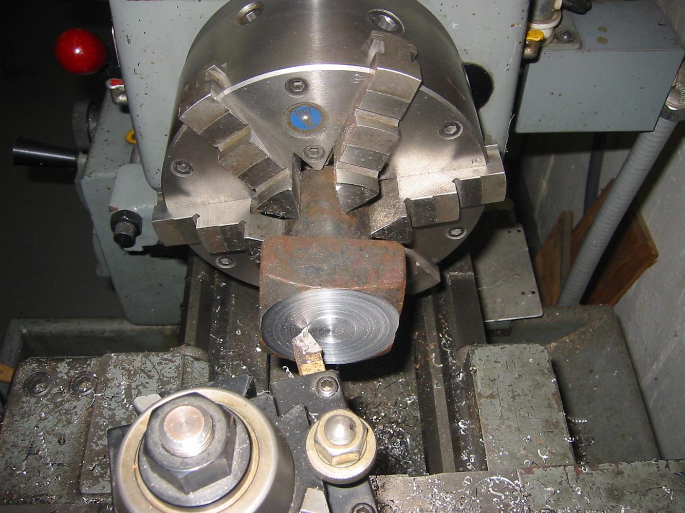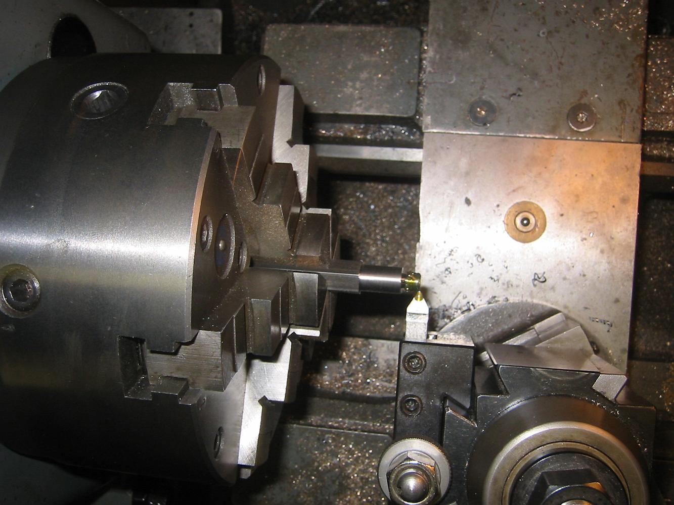 23-Apr-08 Turning an old bolt to make a holding fixture. First we turn the end flat since it will go down on the table.