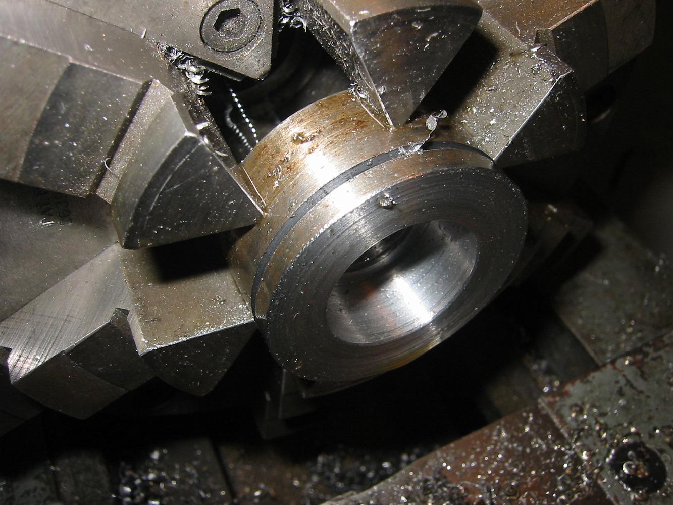 Cutting the pressed in bearing to size. We later decided that cutting the bearing to size THEN pressing it in was a better approach.