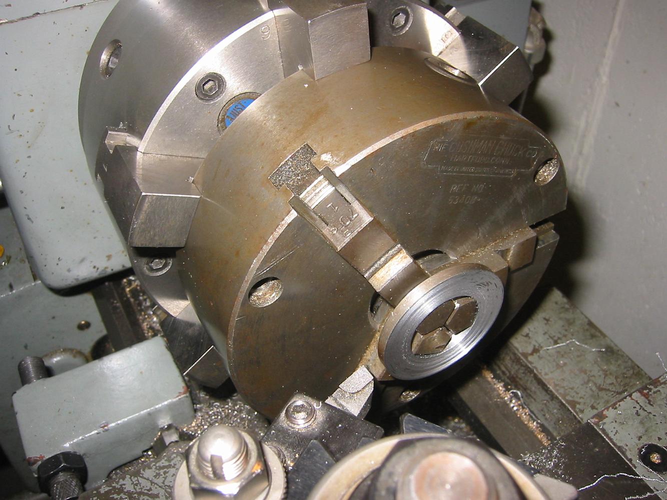 9-July-08 Here's a setup I've never done before: Chucking a chuck to hold the part. Bill did not want to make an expanding mandrel just for two parts, so we…