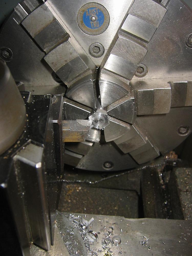 Having completed the facing operation, the bolt is turned around and centered in the 4-jaw chuck, the end faced, deeply center drilled and then center drilled…