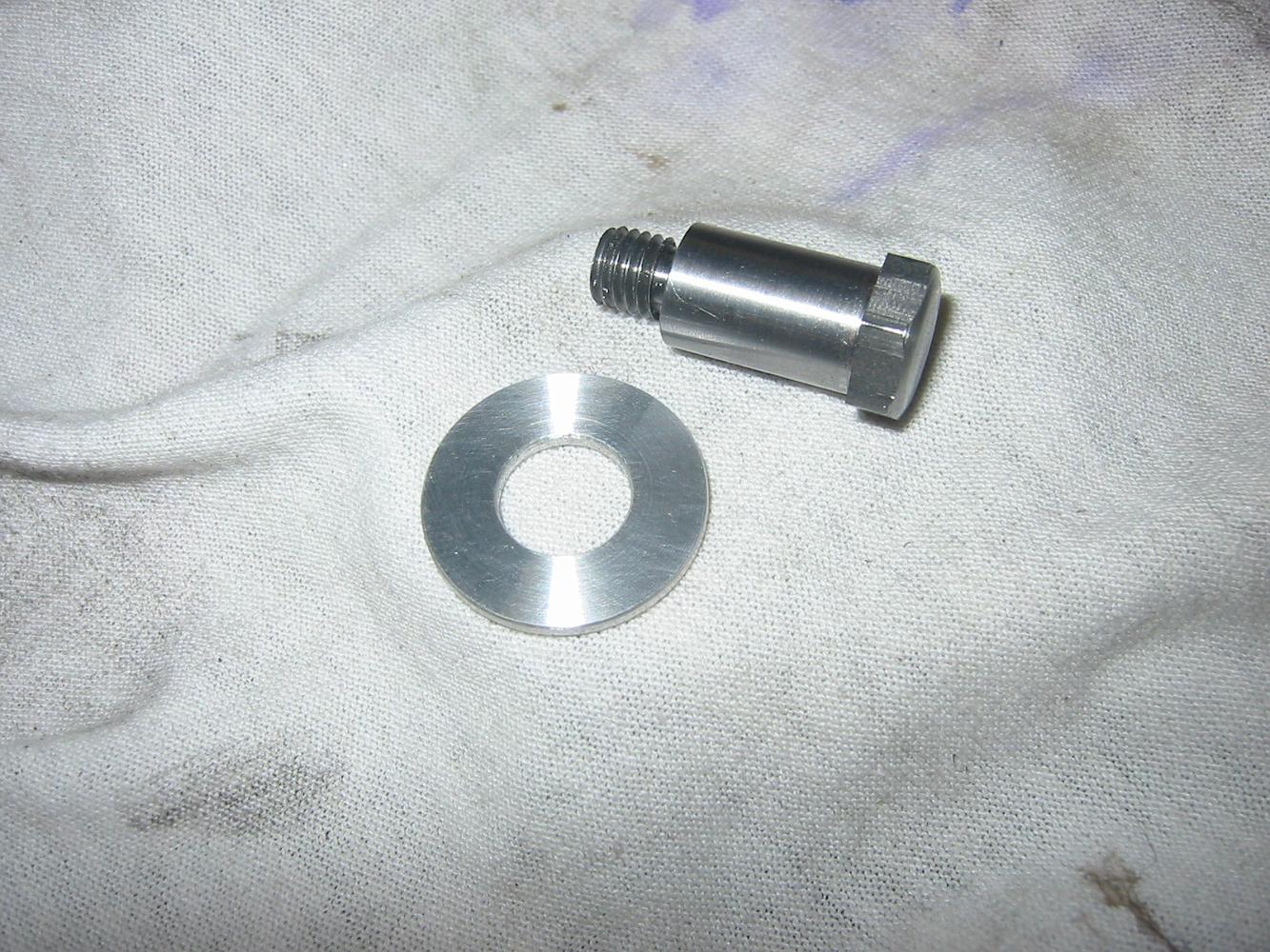 The finished knuckle pin and aluminum washer for the rods. The head of the pin is slightly crowned with a neat finish.