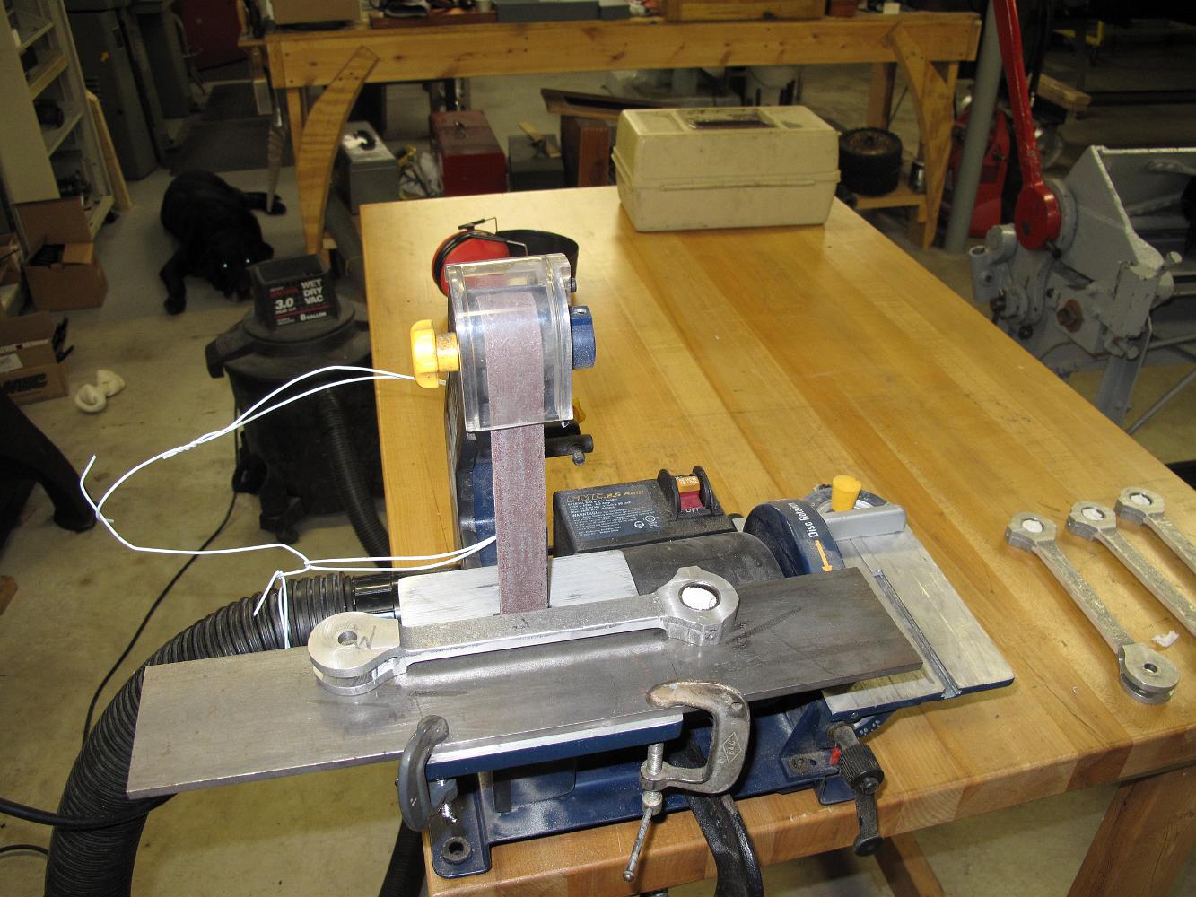 17-July-09 I experiment using the belt sander to clean up the appearance of the rods. Note the fancy coathanger retaining clip holding the shop vacuum hose to…