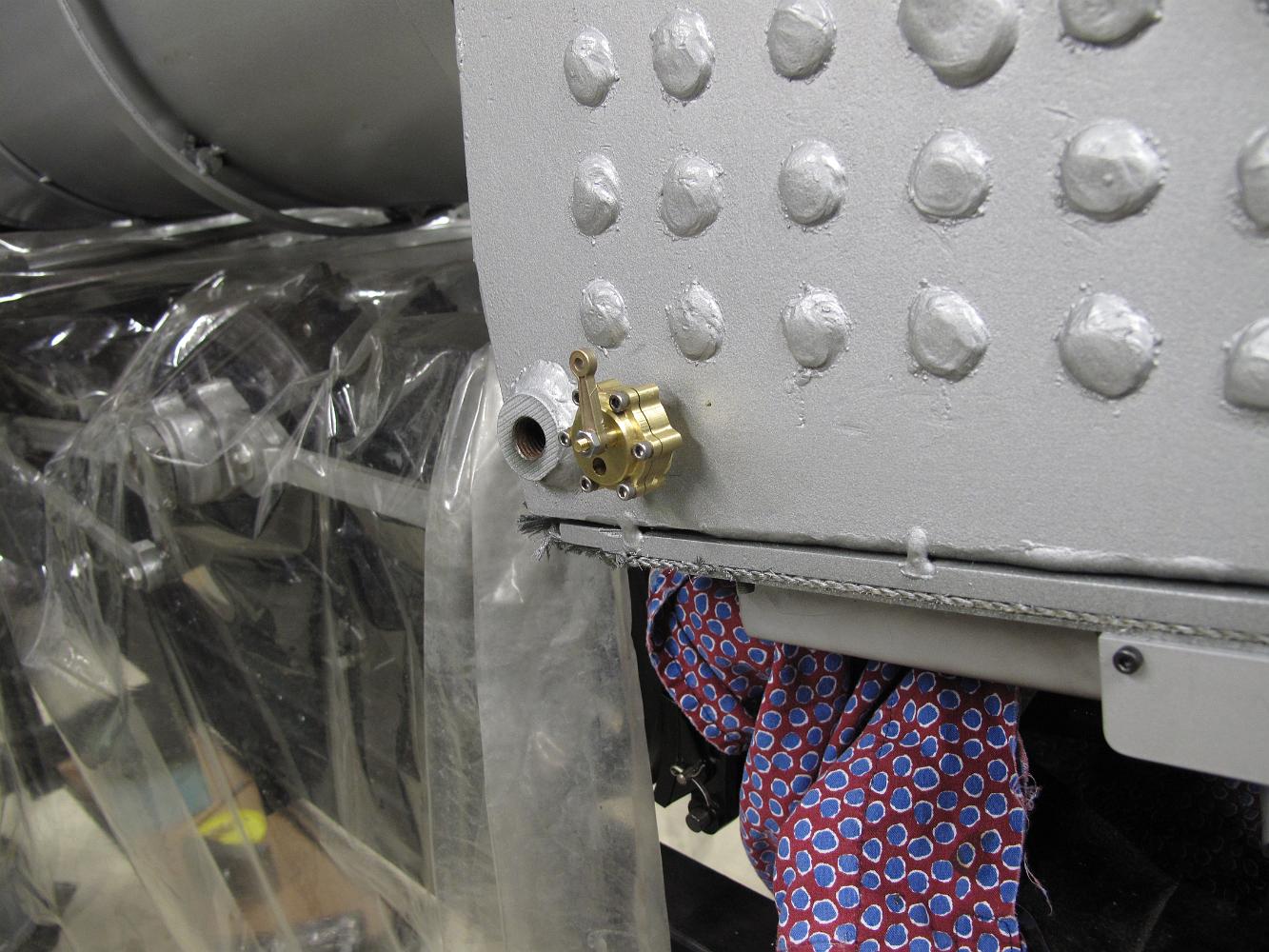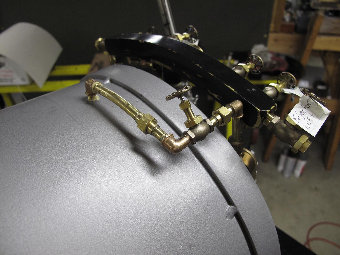 5-Sept-2011 Backhead Manifold installed on the boiler! Also pictured: throttle lever temporarily installed.