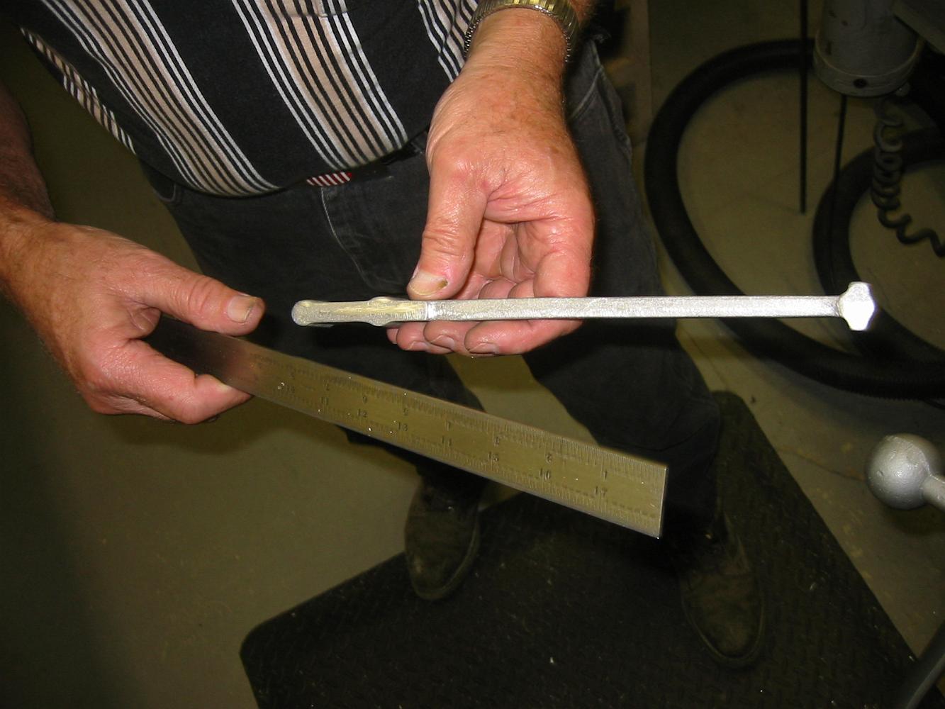 Taking a guess where the relative centerline is inside the casting, we machine the rod end to one-half the finished thickness. Now with both ends having a…