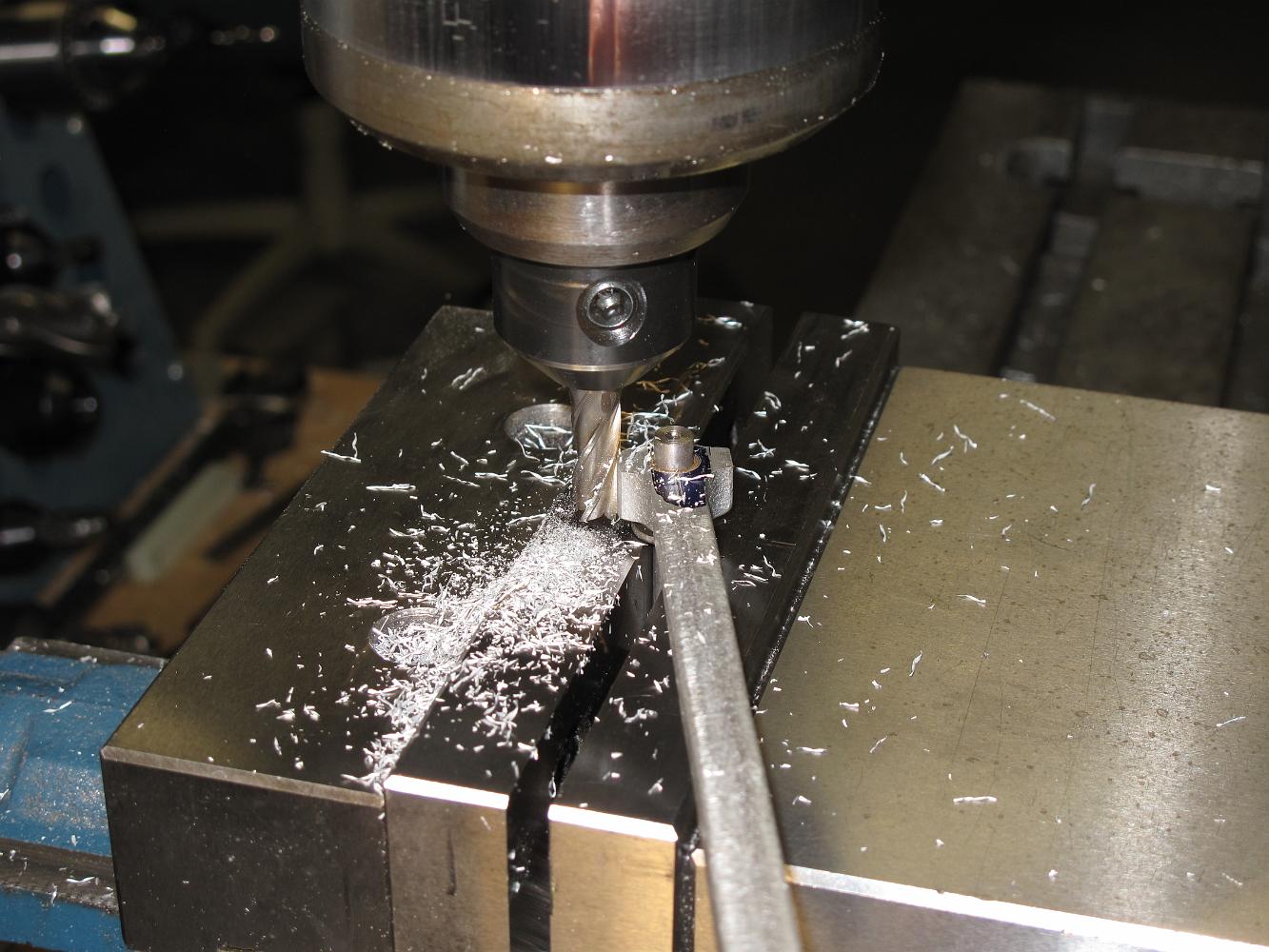 Taking our best guess where the centerline of the Radius rod is inside the casting, we clamp it in the vice, skim cut until we just barely touch the other end.
