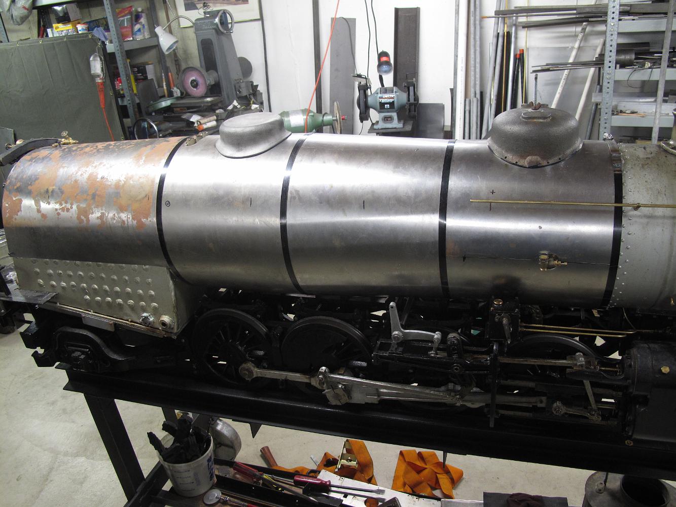 30-July-2012 The rear jacket was a bit of a challenge due to the compound curve at the end closest to the steam dome. The sides of the jacketing are straight in…