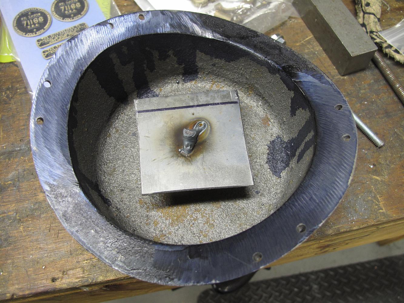 7-May-10 Since the bottom of the boiler is very uneven, and I don't want to drill and tap blind holes into the mud ring, I tack welded 1/4" thick flat stock to…