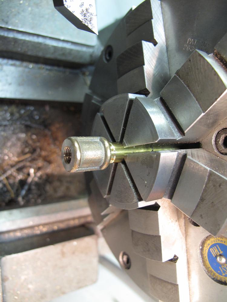 18-May-2012 A little more lathe work and with the help of a 5-40 die, I've put threads on the end of the extension rod to tightly hold the handle to the stem.