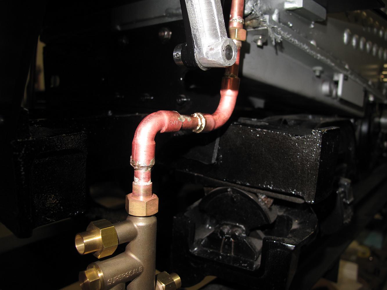 20-Apr-2012 I end the day working on the water connections from the tender to the engine, silver soldering the pipe to the injector union fittings.