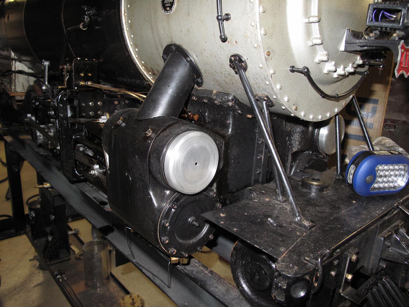 With the cylinders temporarily on the upside down smokebox, we use a piece of pipe to align the blast nozzle in the center of the smokebox. We put the assembly…