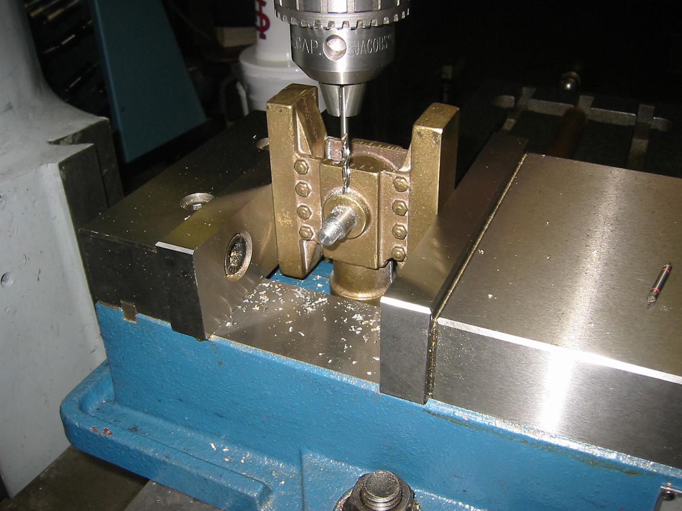 15-Nov-06 One of the last steps is to drill and tap the packing gland holes. It's a close one for the spotting drill and tap -- check out the clearance between…