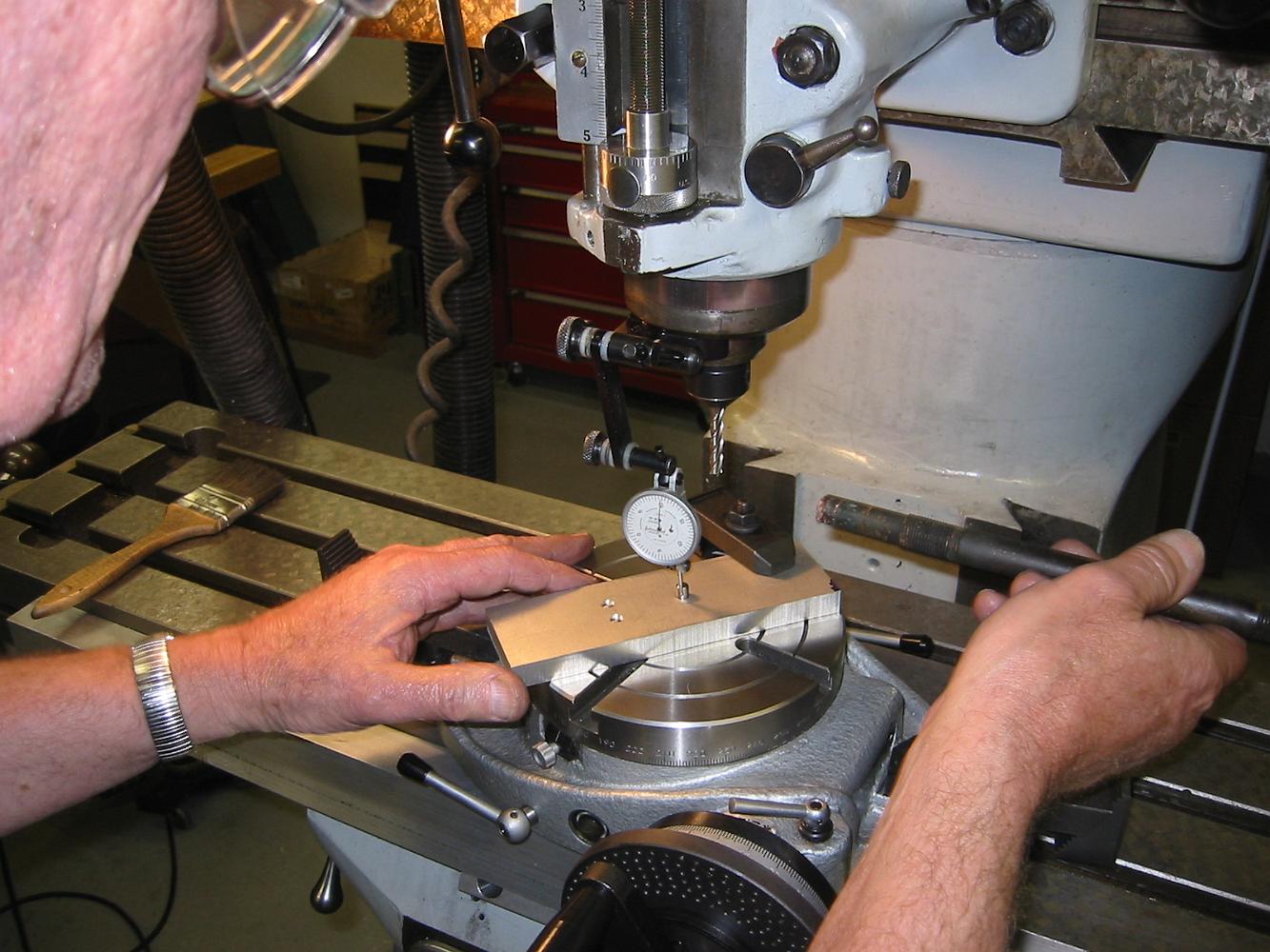 Due to the draft in the casting (taper), we decided to make the top surface the square reference point. Here Bill adjusts the casting for the back operations.