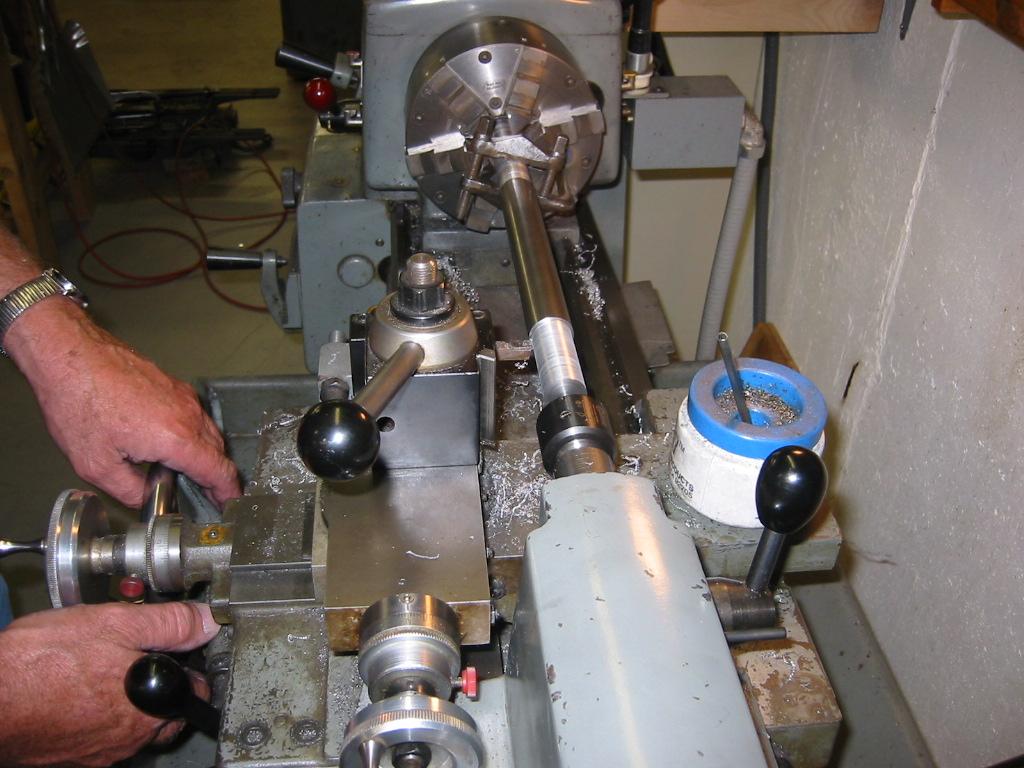 10-May-06 Another familiar operation: turning a mandrel to mount on the angle plate to machine the axle boxes.