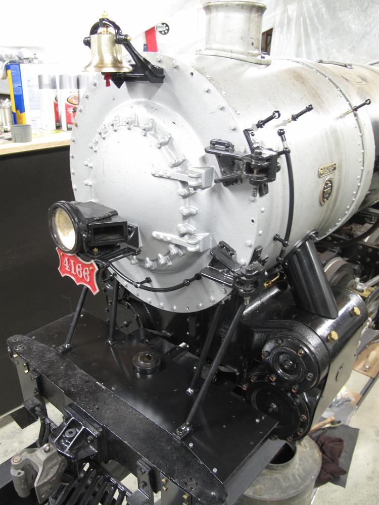 16-Sept-2013 Front view of the engine sporting the bell, handrails, builders plates, jacketing and domes. At last she is starting to look like a complete Frisco…