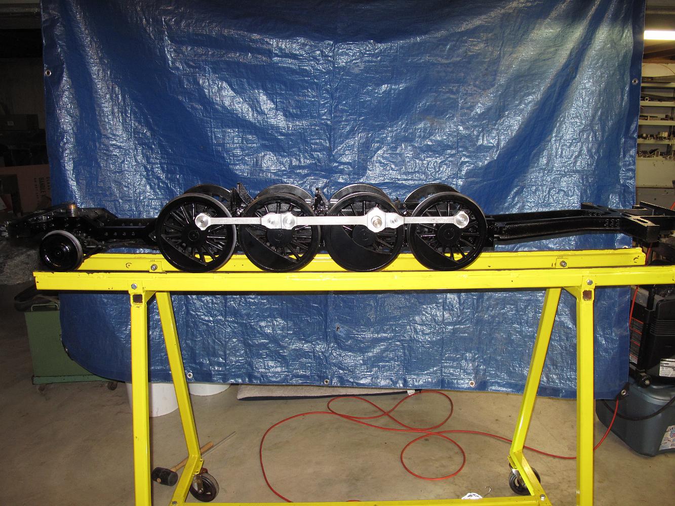 15-Feb-2014 Trial fitting of tender tank on the frame on the assembled trucks, rear view. We discover the frame is 1.5" too tall over the rail with these…